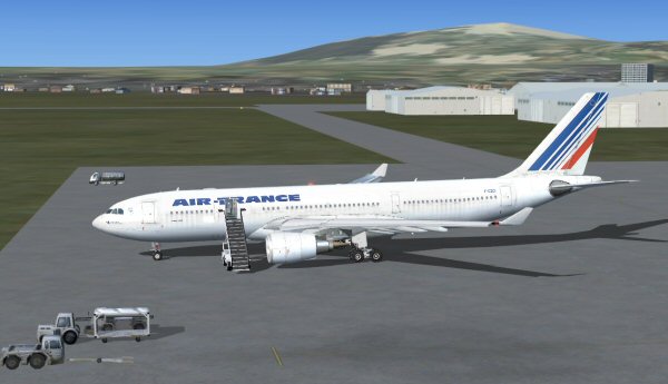 Regarde Mike Papa et son Airbus aux couleurs "maison"... Tu sais c'est l'A330 que l'on avait essayé et que l'on a abandonné pour les problèmes à l'atterrissage... Rappelle-toi, on avait du mal à le stopper en bout de piste... Encore un petit bug résiduel certainement... |