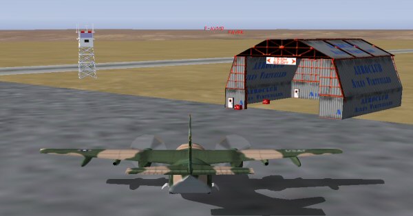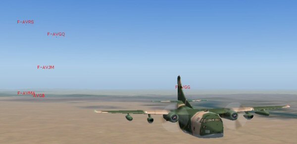 Changement d'appareil pour Juliet Papa Lima, Tango MiKe et Juliet Papa Roméo. Ils prennent un Fairchild C-123 Provider plus adapté pour les pistes courtes que l'on risque de rencontrer en Afrique. Pour le décollage, la distance avec passage |