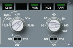 Les deux boutons du bas, 1 et 2 permettent d'afficher soit les VOR, soit les NDB dans le Navigation Display